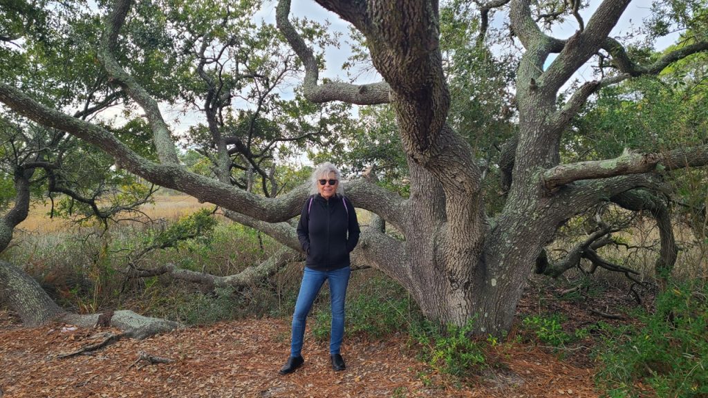 After exploring the shoreline, we drove inland to Pinckney Island National Wildlife Refuge, a place steeped in history. Commander Charles Pinckney—Revolutionary War officer and signer of the U.S. Constitution—once spent time here, and the island passed into his family’s hands in 1779. In the 1930s, it became a private game preserve, and in 1975, the family donated it to the United States as a wildlife refuge. Archaeological evidence shows people lived here over 10,000 years ago, long before any of its more recent chapters. Today, miles of trails wind through salt marsh, forest, and ponds, making it a haven for hikers, birders, and anyone who loves quiet places. We walked a bit of the trail system, feeling the weight of history in the stillness.