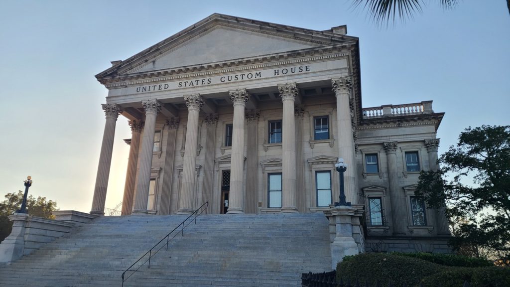 From Sesqui, we continued our drive toward Charleston, watching the landscape slowly shift from pine forests to marsh‑lined low country as we approached the coast. By the time we reached downtown, the late‑day light was settling beautifully over the historic district. We parked in the College of Charleston campus garage—an easy jumping‑off point—and set out on foot to explore this renown Southern city.