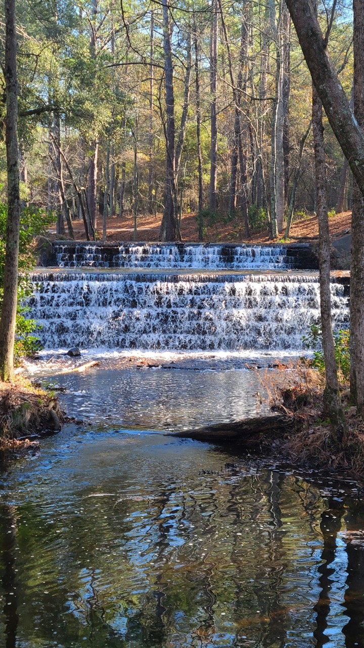 The moment we stepped out of the car, we realized we’d wandered into a living chapter of 1930s history. The entire 1,400‑acre park was shaped by the Civilian Conservation Corps, one of those New Deal programs that left a quiet but lasting legacy across the country. Here, the CCC built a man‑made lake, carved trails through the Sandhills, and engineered a beautiful stepped spillway that still sends water cascading from the lake into Jackson Creek. Standing there, watching the water tumble down the stonework, it was easy to imagine the young men who built it—many far from home, earning a dollar a day, shaping a park that would outlast them by generations.