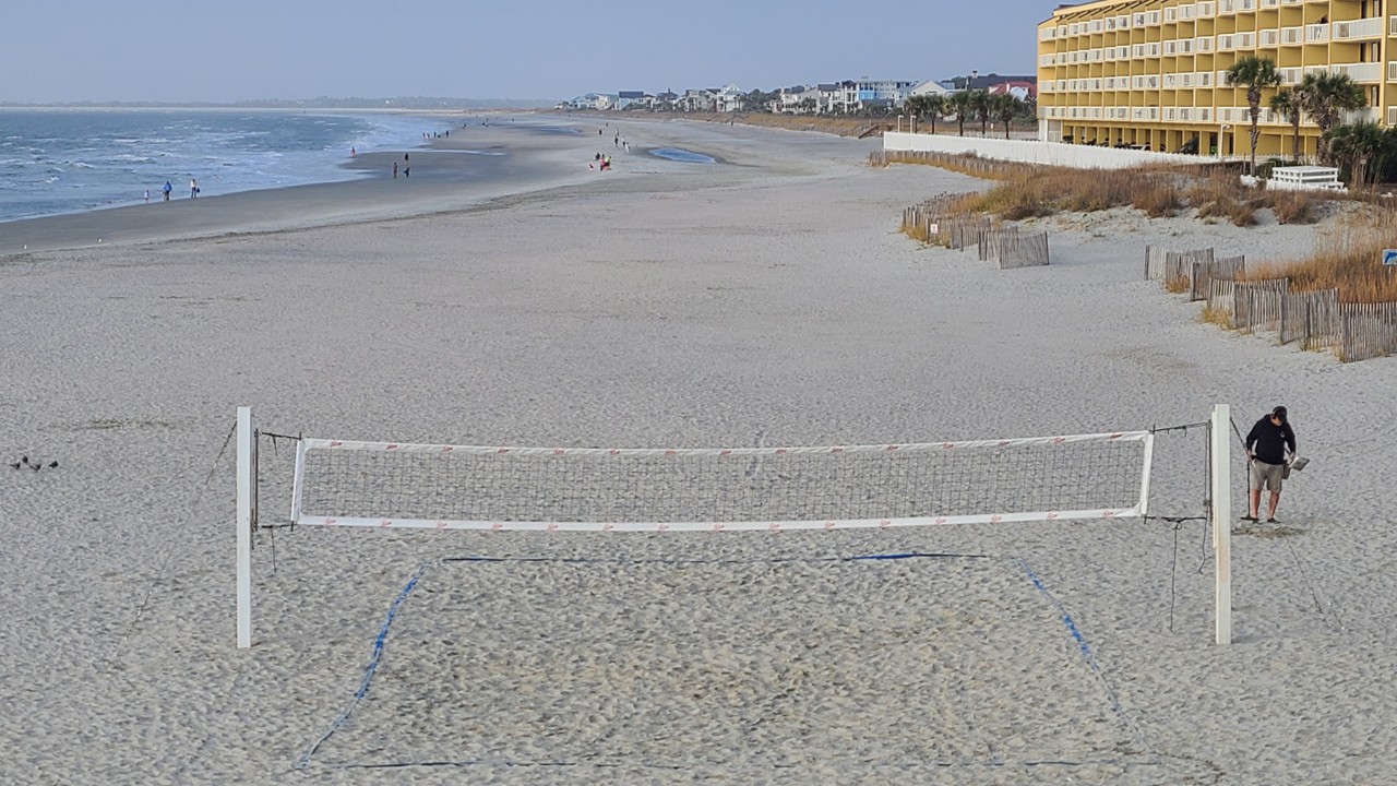 Our first stop was Folly Field Beach Park, mid‑island on the Atlantic. Low tide had pulled the water far back, revealing a beach that felt impossibly wide and flat—one of the broadest stretches of sand on Hilton Head. Only a handful of people were out walking their dogs, leaving long footprints in the damp sand. The condos and apartments sat well behind the dunes, giving the shoreline a peaceful, open feel. It was the kind of beach where you breathe a little deeper without even realizing it.